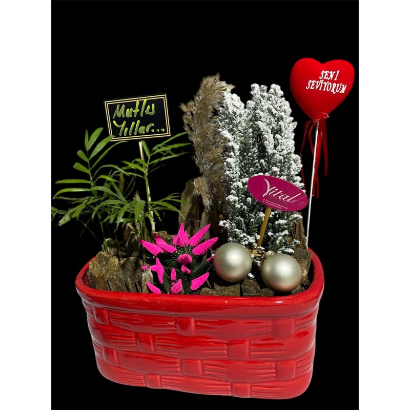 Kırmızı porselen saksıda aranjman